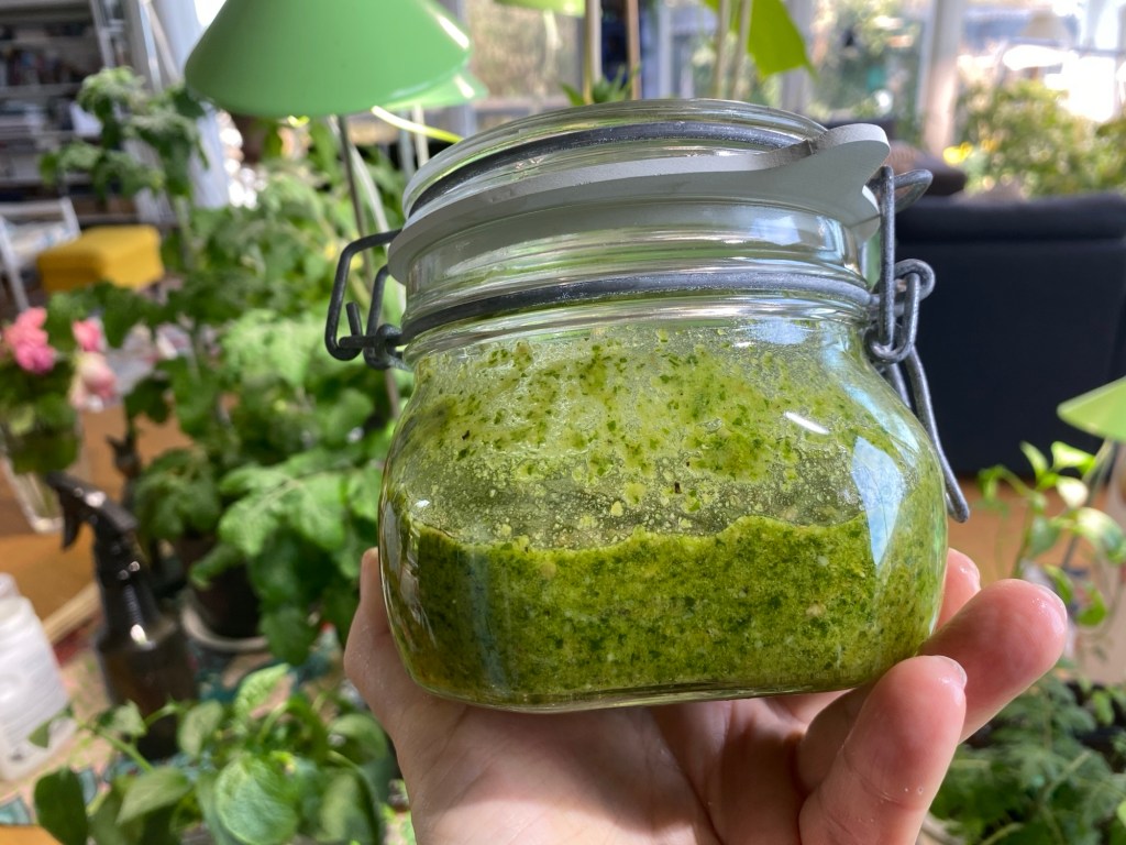 Ändå gjorde jag igår pesto på ramslök (la i lite basilika också…) för det slår all annan pesto. Tack snälla Kristina för att du förser mig både med blad och små plantor.