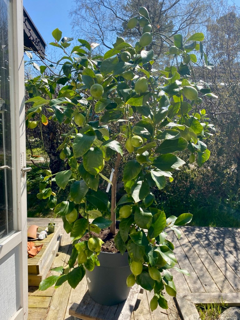 Hon: idag kom sommaren direkt, utan att passera våren. Känns det som i alla fall. Har gått i flip-flop och t-shirt hela dagen, och det stora citronträdet fick till och med flytta ut.