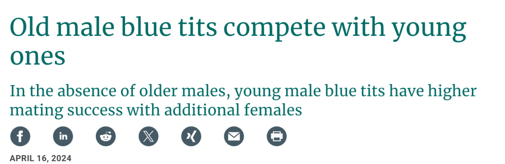 […] värld: Just nu kopuleras det i lövverken. Igår skrev jag om att otrogna blåmeshonor föredrar äldre älskare utanför det egna boet.Även talgoxen har sina egenheter. Det är en ljudlig fågel, och har […]