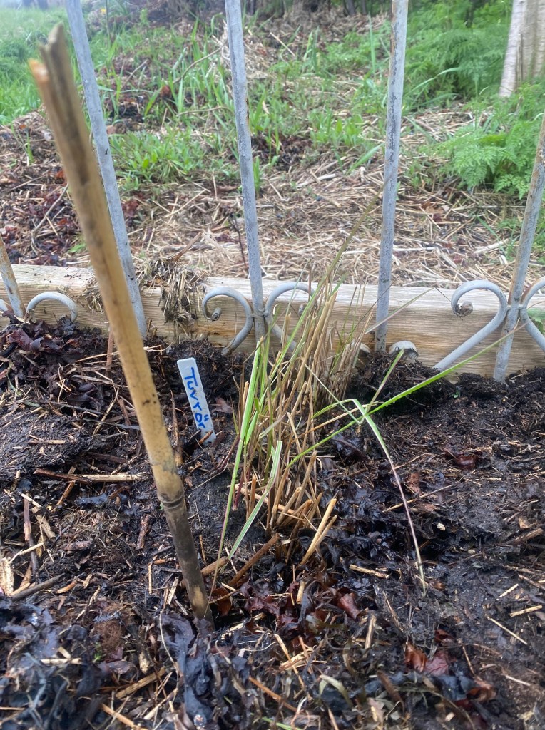 Eftersom kriget fortsätter. Till de nya bosättarna på mitt befriade område hör nu även tuvrör (Calamagrostis Acutiflora), ett vackert prydnadsgräs som jag fått av Ancy.