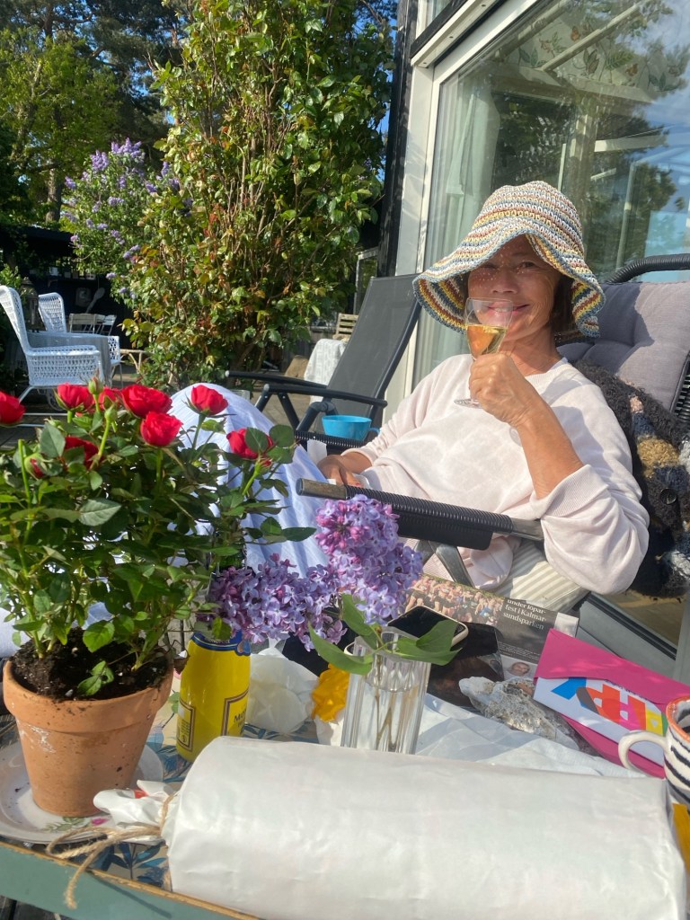 Hann hem innan regnet började vid sjutiden, och ett litet glas bubbel i kvällssolen utanför Chateau Margareta blev det. Fortfarande väldigt förkyld så det blev en stillsam kväll.