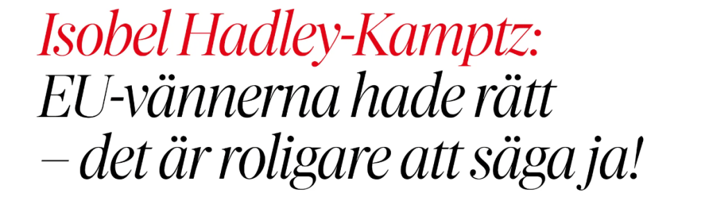 Folkomröstningen minns jag diffust. Men jag tror gärna Hadley-Kamptz, när hon konstaterar att den valrörelsen i grunden var optimistisk och utan smutsig skrämselpropaganda (läs: troll): ”Det negativa jag hittar är från motståndarna, där socialdemokraten Margareta Winberg exempelvis varnade för att Sverige vid ett EU-medlemskap skulle tvingas driva Vatikanstatens jämställdhetspolitik. Vatikanen var förvisso inte ens med i EU, men varför låta sig hindras av sådana småsaker?”