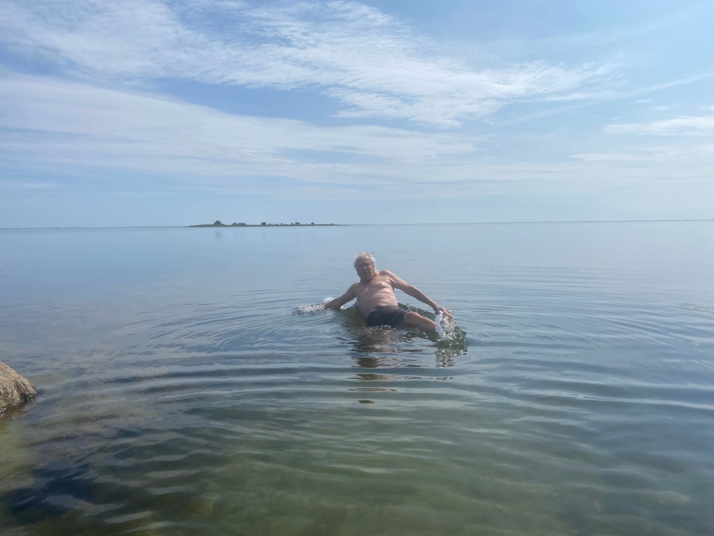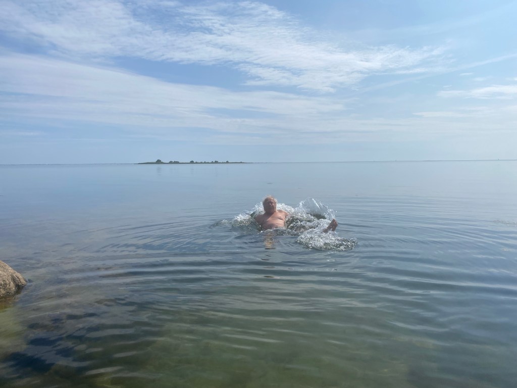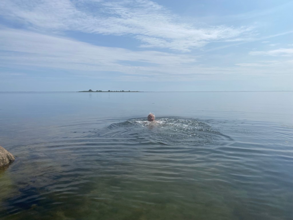 Hon har säkert rätt i att temperaturen är högre innanför revet utanför vår udde. Men ändå. Svensk sommar är en underbar tid, men för min del får klimatförändringarna gärna höja temperaturen på badvattnet några grader till.