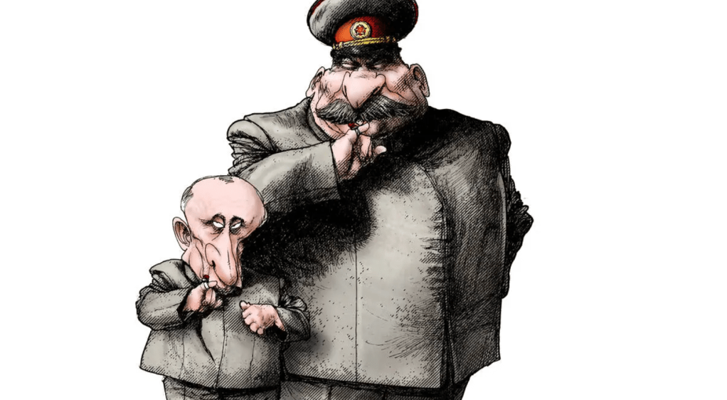 – Putin vaknar i en mardröm 14 dagar efter ukrainarnas förödmjukande anfall i Kursk. När han tittar han upp ser han sin föregångare Stalins spöke som undrar: