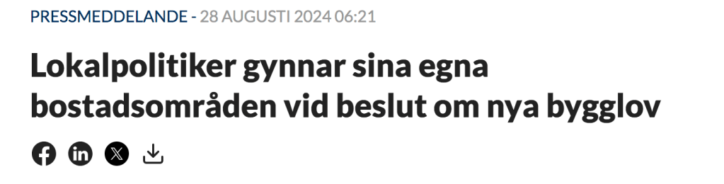 Men apropå att tänka bort sig själv Det byggs färre flerfamiljshus i områden där kommunpolitiker bor, visar ny nationalekonomisk forskning.