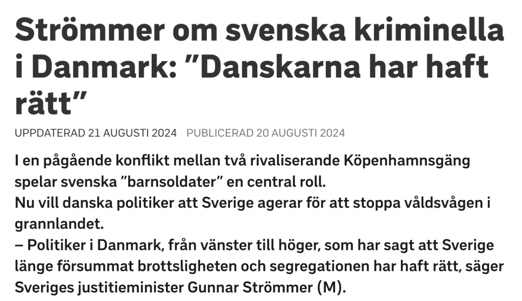 Vad som är fel? Danmarks justitieminister borde förstås ha krupit på sina knän genom hela Sverige för att beklaga sig över dessa barnarov.