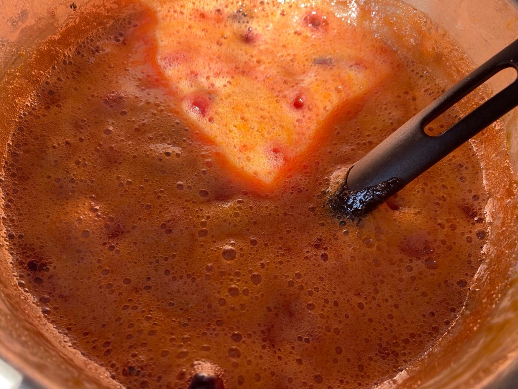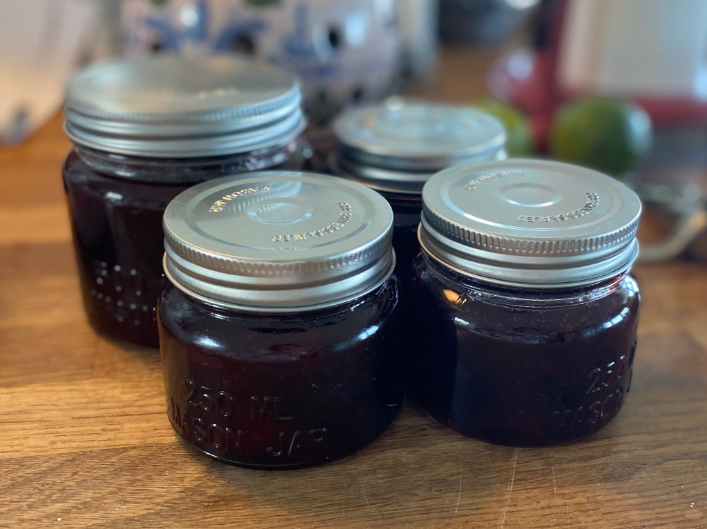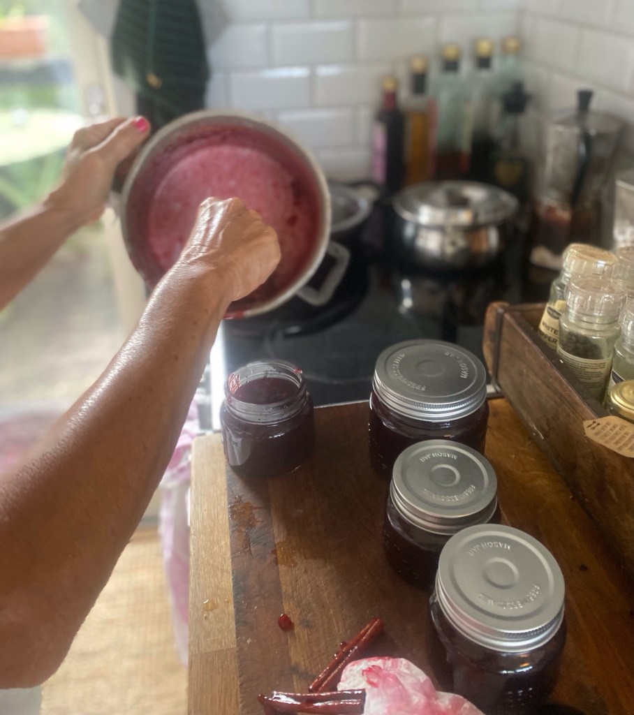 Det var ett jäkla pill att få ut kärnorna kan jag säga, men väl i grytan var bara färgen på den kokande sylten värt mödan, så snygg.