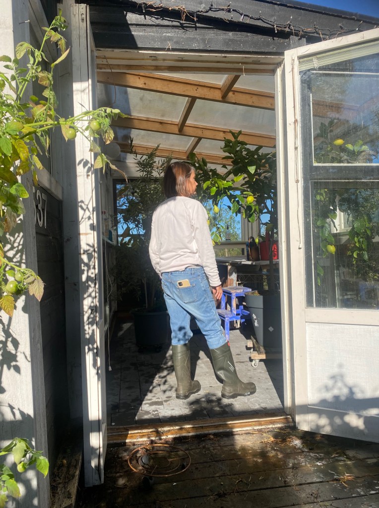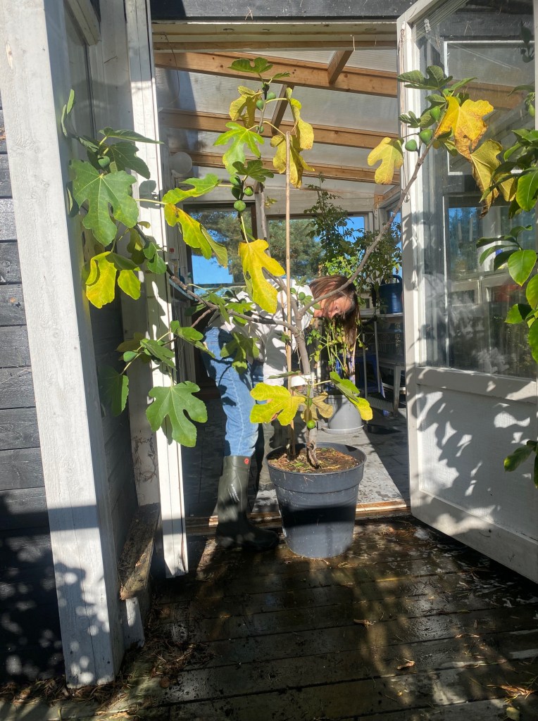 Hon: och medan han bloggade har jag slitit hårt med att röja och städa ur växthuset där mina träd står under vintern. Det verkar som om det ska bli kallt i natt, och även om de klarar någon minusgrad gillar de inte blåst och skyfall. Så bara att sätta igång trots att på framsidan mot havet är sommar…