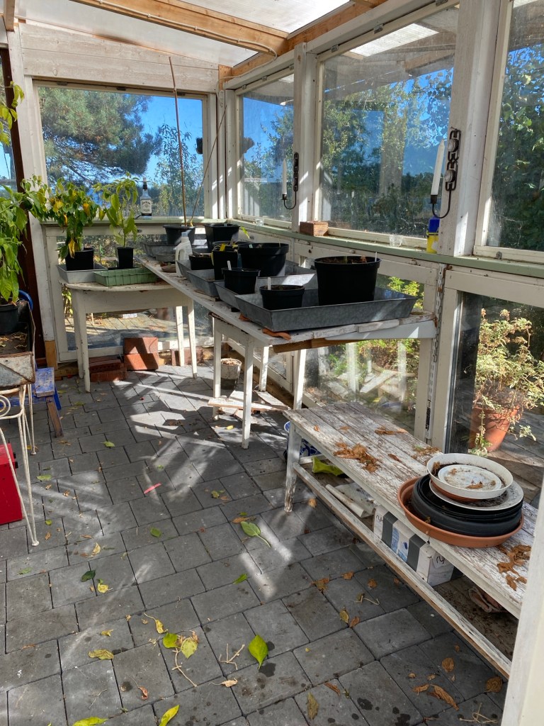 En bit på väg, de flesta chiliplantorna är nedklippta och chilin skördad. Några plantor fick flytta in i uterummet. Städningen kvar då.