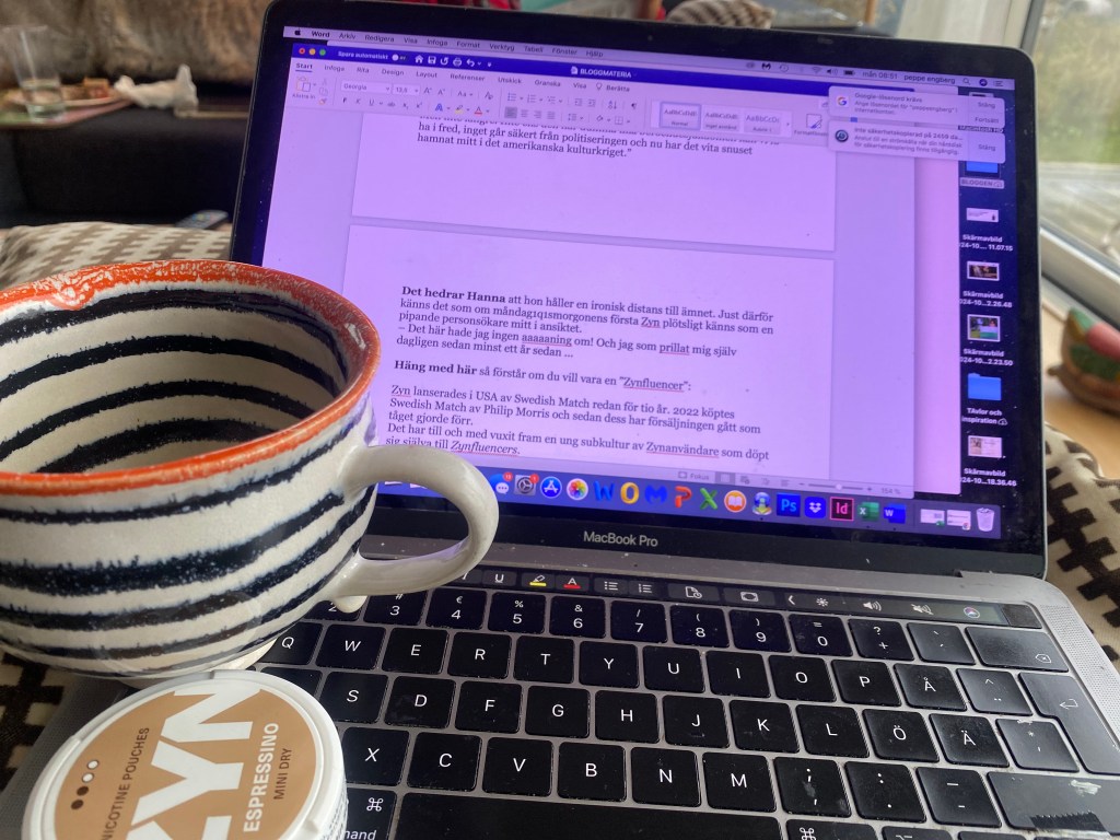 Vad det betyder? Ungefär det här: En ”bred krets av frat-iga, kåta, buffligt provokativa män”, som bildar ”en ny internetsubkultur full av egna mem och kulturella referenser”. Och här stavar jag mig genom Hanna Dahls informationstäta text – med länkar för dig som inte är van vid kulurspråket: ”Det vita snuset har nikotinets manlighet, men det har också techbro-kulturens självoptimeringsaura och passar utmärkt in i bland kreatintillskott, cold brew-kaffe och mikrodoserad lsd. Zynfluerarna hävdar inte sällan att Zyn är bra för erektionen.”