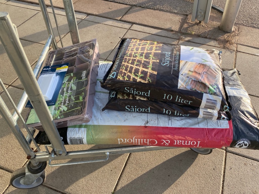 Hon: vaknade tidigt och kom på att det faktiskt är hög tid att börja förså en del av chilisorterna. Men har de fått in såjord på Agro–shop än…