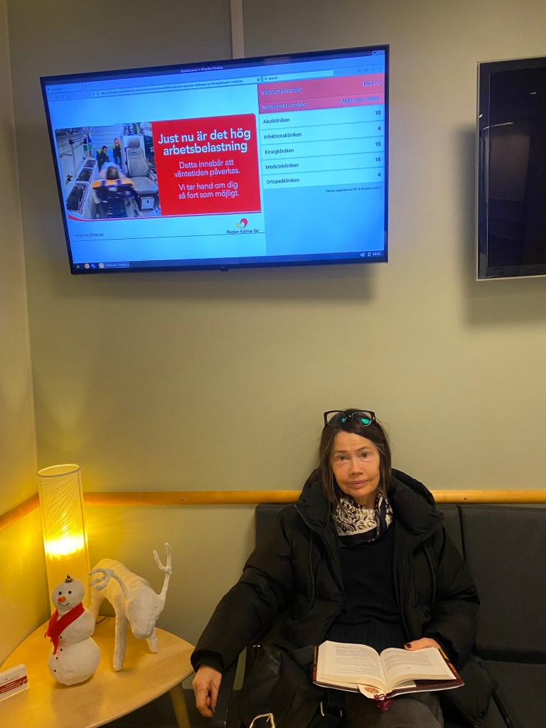 Hon: hemma på udden igen efter ett flängande–hit–och–dit–liv över jul- och nyårshelgen som avslutas med ett kort stopp på Kalmar lasarett för hans del.