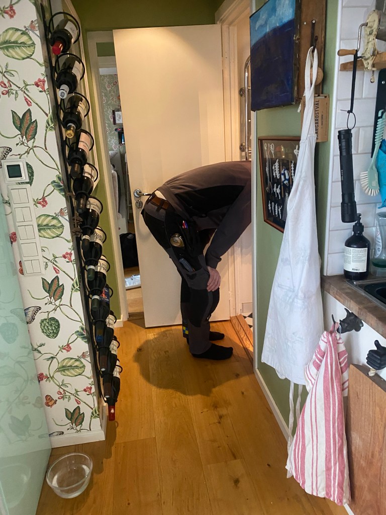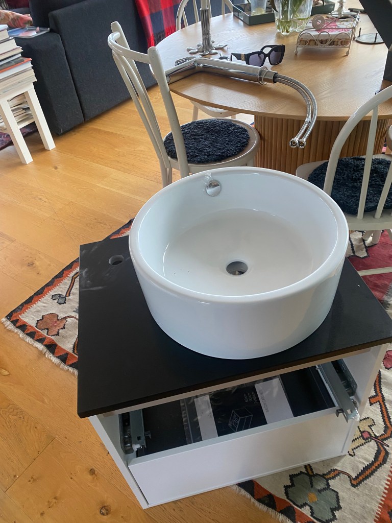 Sagt är gjort. Idag deppar vi inte på udden. Skitväder, men inne håller grabbarna på att installera ett skinande nytt tvättställ i vårt lilla badrum.