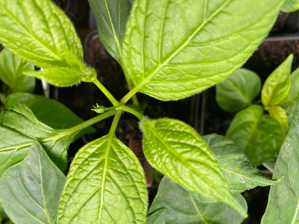 Hon: första knoppen på mina ”lite-senare-än-vanligt” satta chiliplantor, hurra!!!