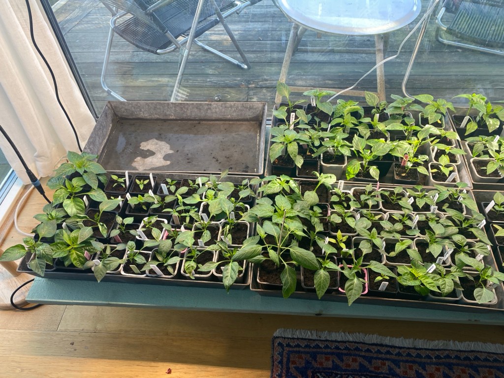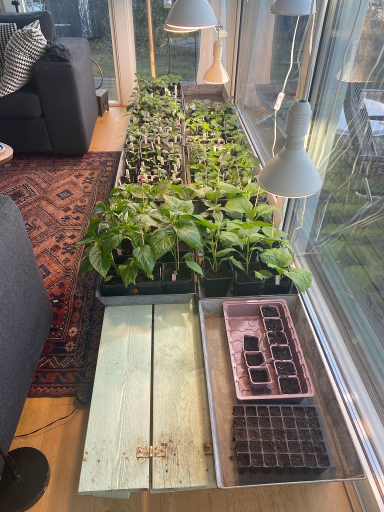Hon: Ja, idag åkte stora plantbordet in framför fönstret mot havet. Men tusan vad det fylldes upp snabbt fast jag inte hann planterar om några alls idag.