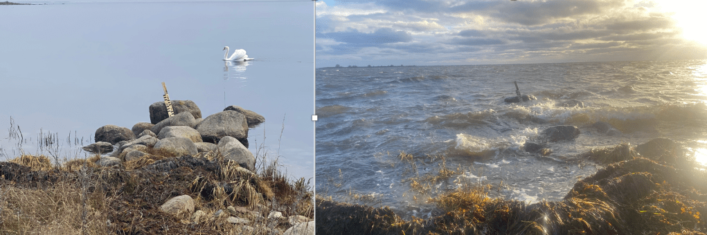 Han: Havet ger och havet tar. Hittills i vinter har havet gett henne 6 ton tång till gödning av tomatplantor och chili. För egen del har jag bara förlorat min nivåmätare. Det kan låta som en liten förlust.