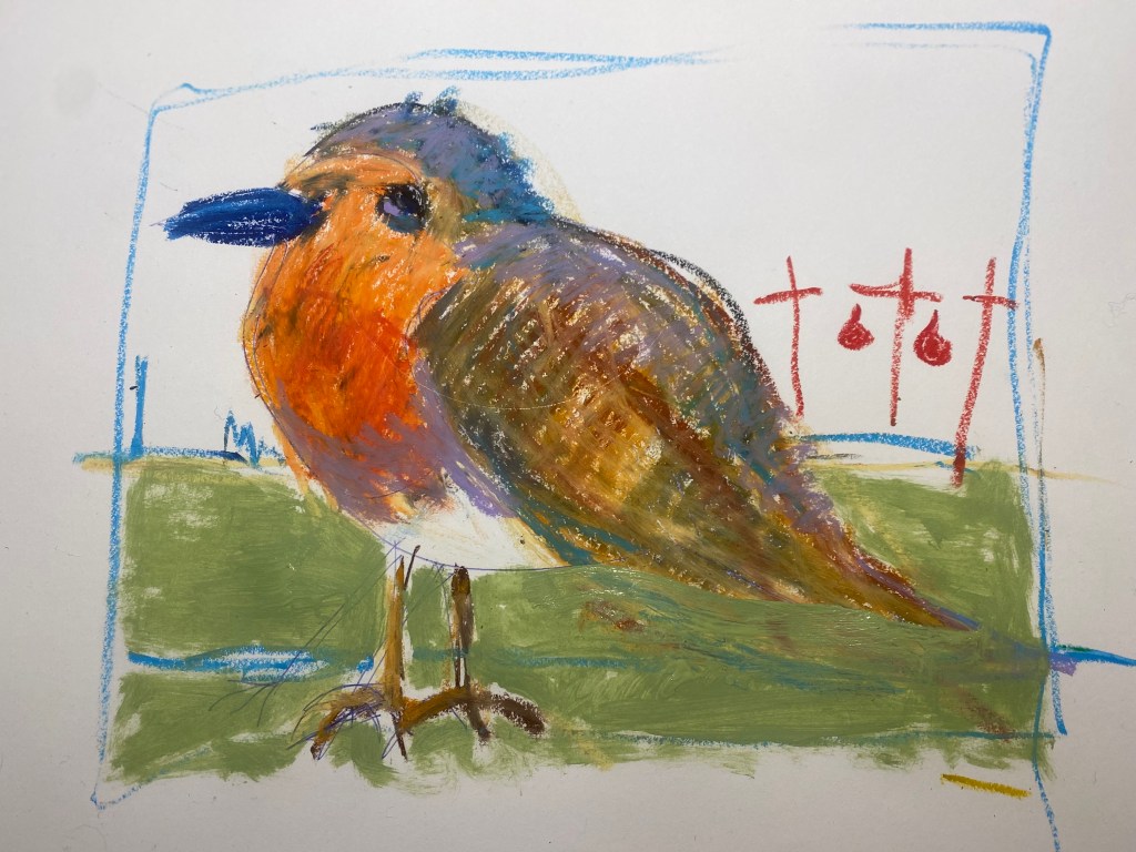 Det är kallt, men solen skiner och visst finns det skäl att stiga ur sängen även idag. Igår berättade jag om rödhaken visat sig på udden.