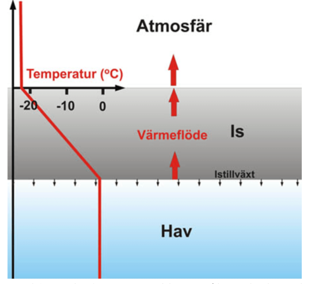– Hur fort isen växer styrs av värmeflödet upp genom isen från undre ytan.