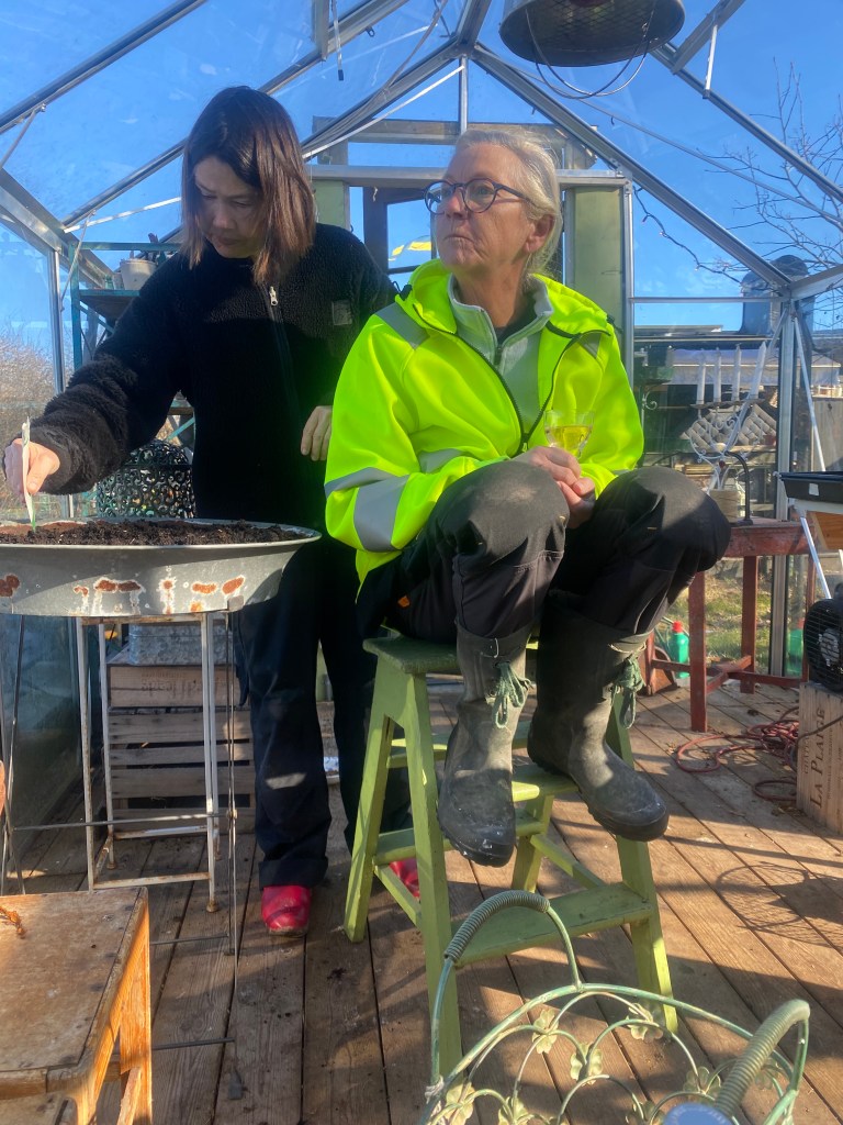 Det gjorde det vi igår. Vi firade vårens första flaska rosé i växthuset. Med arbete och trevligt besök inifrån viken.