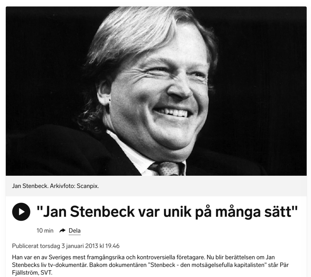 PS: Jag lärde mig mycket av Jan Stenbeck. Av hans ”12 Corporate Rules” för Our Group har jag alltid försökt följa regel nr 12: