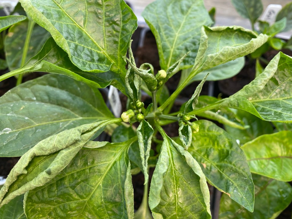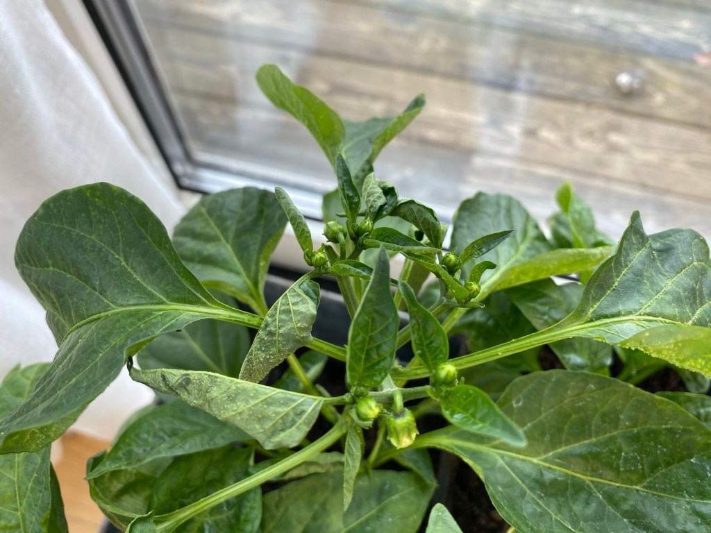 Tittar med oro på chiliplantor som inte mår hundra. En del vissnar uppifrån. Tror det beror på för mycket blomknoppning. Har toppat en del och de har börjat sätta massor av nya blad. Sorgmyggor har jag också, men de gör väl mest skada på nysådda plantor. Borde jag göra något åt dem…? Orkar jag…? Dagens stora fråga!