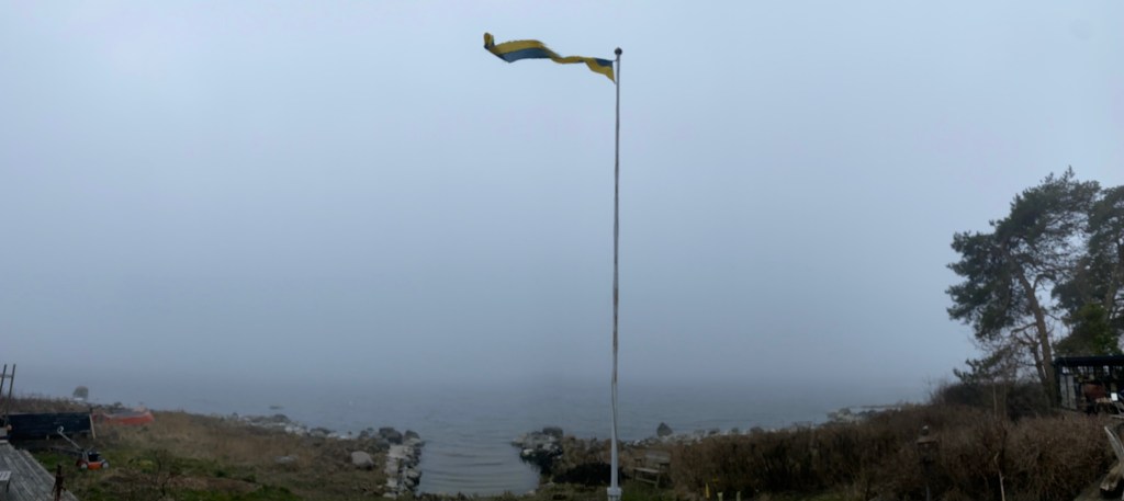 Med andra ord: Det gråa i förmiddagens kustdimman gömmer alla de grundfärger som tillhör våren på udden.