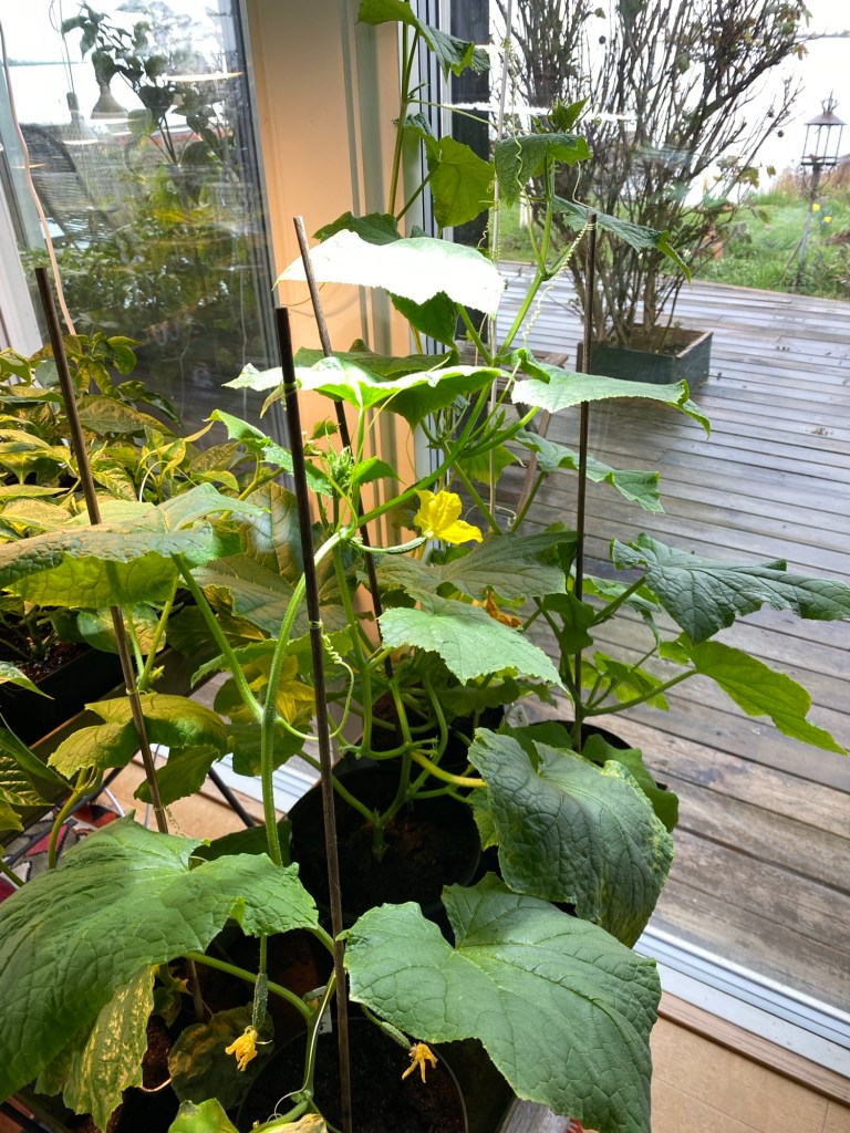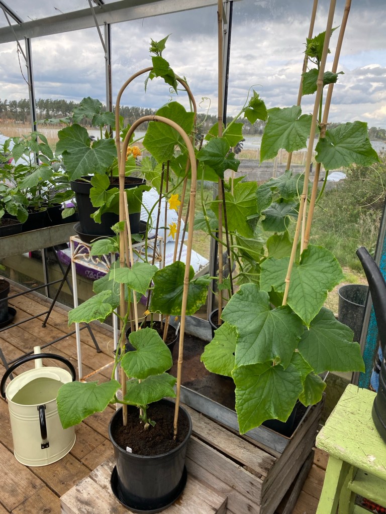 Hade nog tänkt få ut en del gurkor också redan idag, de som klänger mest uppåt väggarna, men det är risky business. De gillar inte kyla!!!