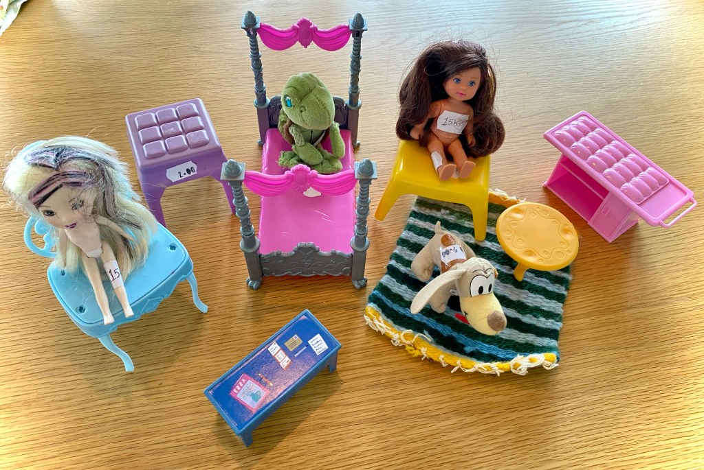 Imorgon åker jag till Stockholm för att hjälpa dottern flytta. Separera är dyrt, ett halvt nytt bohag ska köpas. Och barnbarnets nya dockskåp ska fyllas. Dockskåpsmöbler är också dyra, men inte på Vågen. 15 kronor för alla möbler inklusive matta. Invånarna kostade däremot lite mer, och det är väl helt rätt. Människovärde är viktigt!