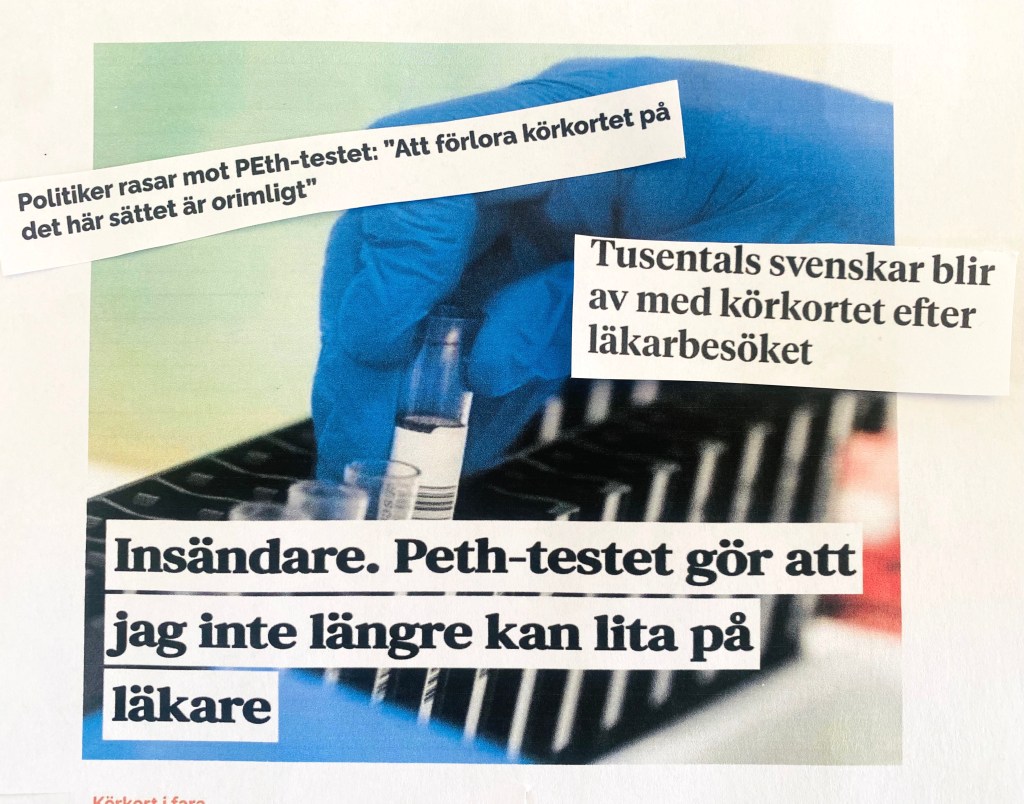Han: Det händer inte ofta att ett blodprov gör karriär i sociala medier. Men nu har det hänt. Och självklart har även jag synpunkter på PhosphatidylEthanol – till vardags kallat PEth – icke att förväxla med pet, husdjur.