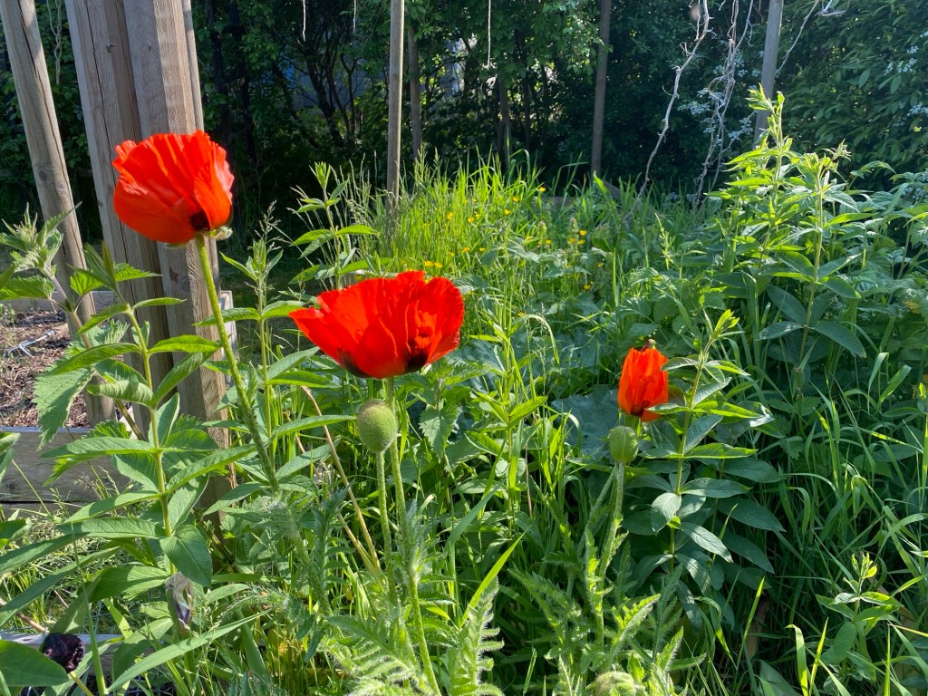 Hon: det händer mycket på fem dagar, vallmon har slagit ut och de först satta tomaterna har börjat mogna!