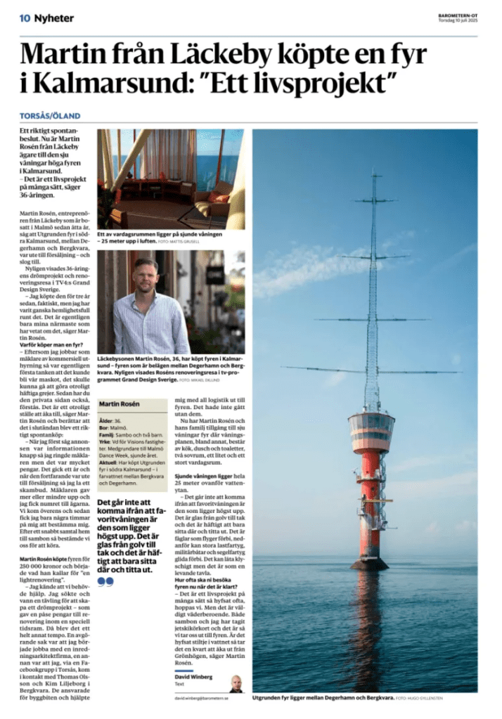PS, torsdag: Journalister jagar i flock. Det var inte bara jag som missat programmet. Först idag publicerar Barometern sitt knäck om sommarstugan där ute i farleden.