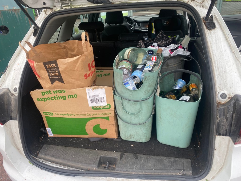 Han: En vanlig dag på jobbet, stugbytardag och den vanliga resan i ensamhet till Återvinningen: 38 tomflaskor, varav ett antal magnum Chateau Mont Redon och dito rosé.