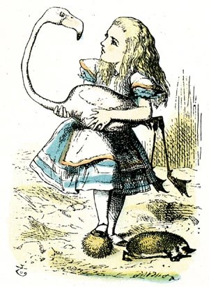 – Det vill säga ”Wonderland croquet”; en variant av engelsk krocket, där bollarna är levande igelkottar och flamingos används som klubbor.