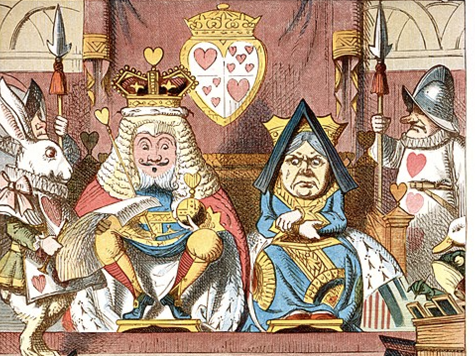 Med författaren Lewis Carrolls egna ord: ”Drottningen hade bara ett sätt att lösa alla svårigheter, stora som små. ’Av med hans huvud!’ sa hon utan att ens titta sig omkring.”