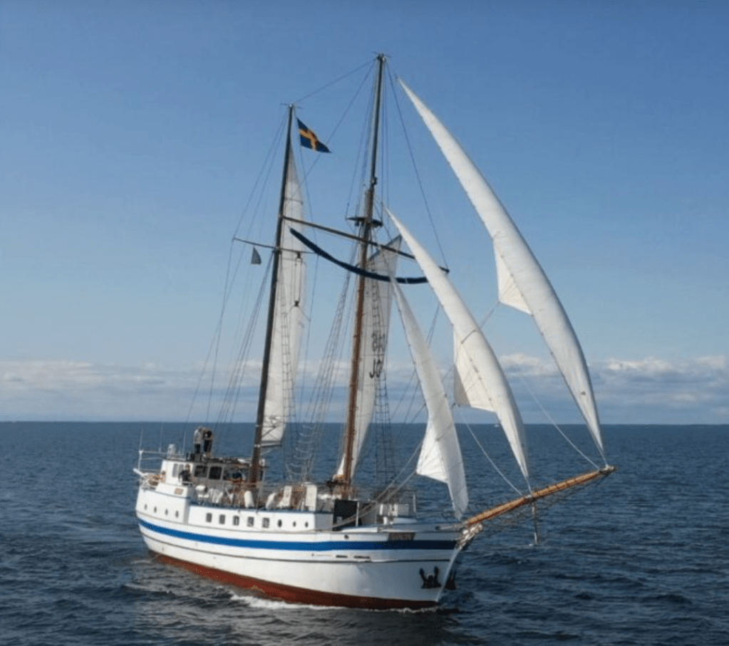 Enligt tvåmastarens kapten drivs den av ”bön, diesel och himmelska vindar”.