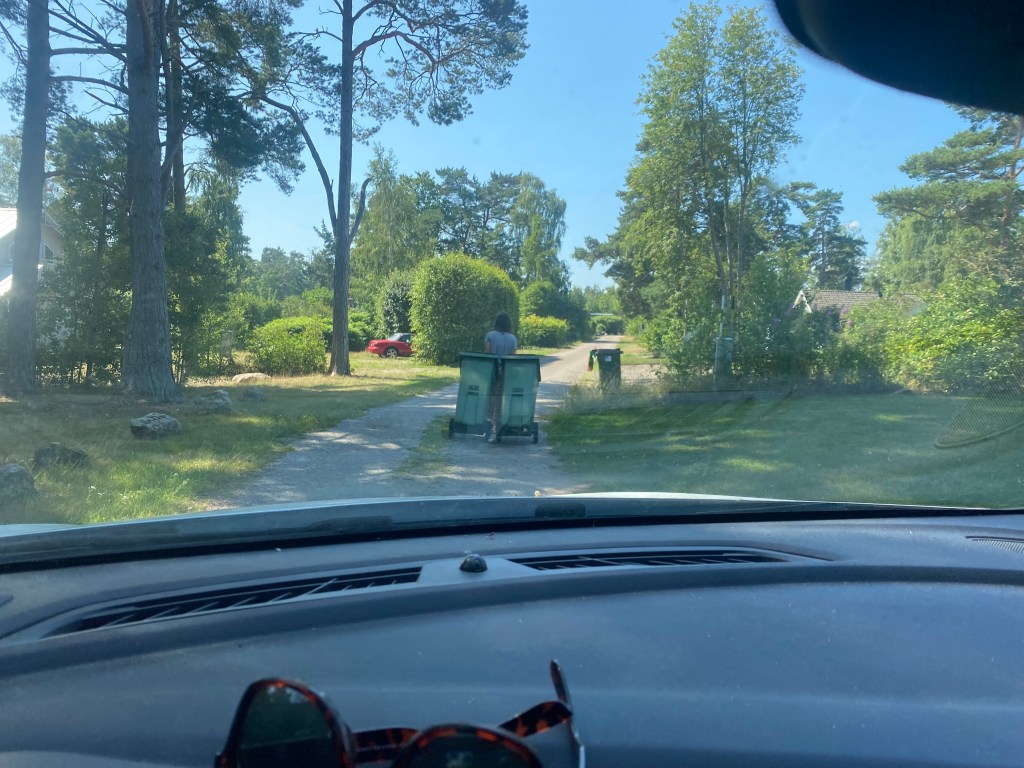 Livet på landet består nu inte bara av vackra trollsländor. Någon måste köra ut soptunnorna också. Som vanligt är papparazzi på plats.