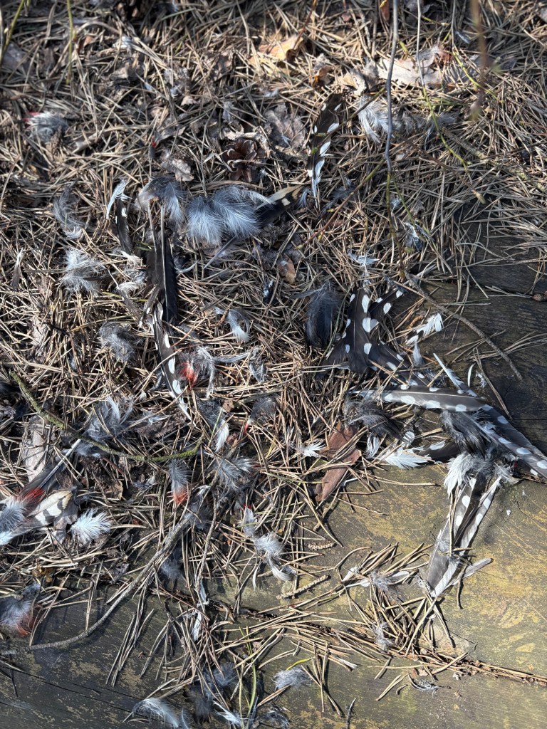 Apropå döden döden: Den mest drabbande upptäckten är resterna av den stora hackspetten som i tidig vår trummat sina solon i Ismans tallar.