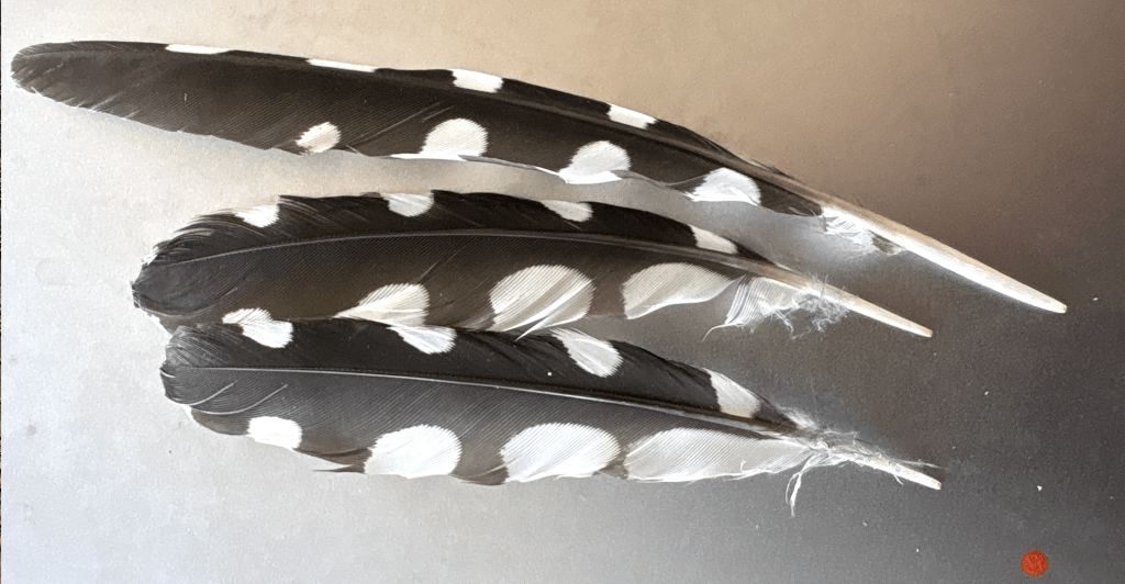 – Av samma skäl får tre fjädrar bakom Margaretas stuga en stor hackspett att bli högst levande.