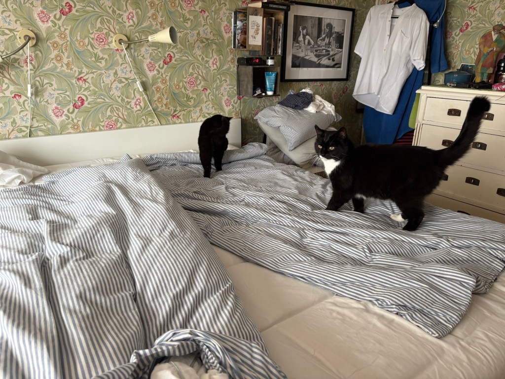 Och hjälpt till att byta lakan, bland annat… suck! Matte har bråttom till gymmet nu!!!