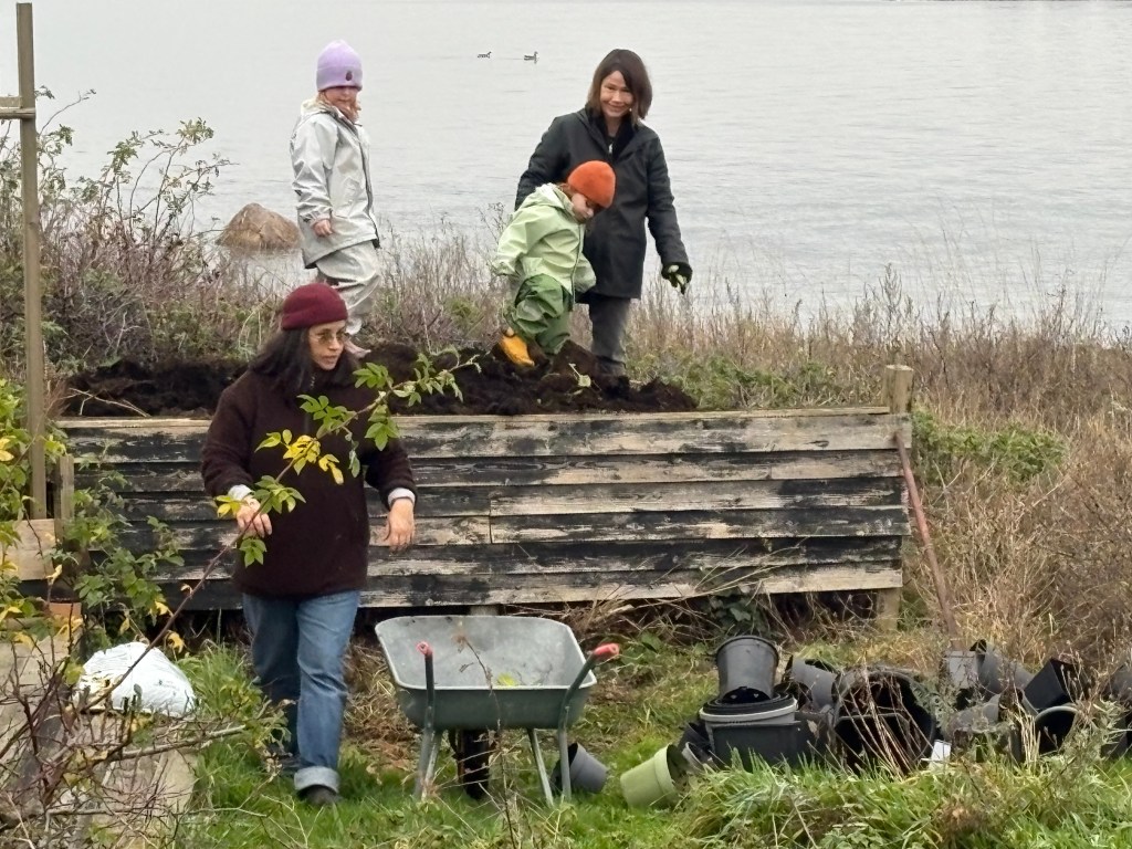 Hjälpa till att skörda de sista tomaterna och chilifrukterna till exempel. Och tömma växthusen på krukor. Och det precis innan frosten kom, pust!
