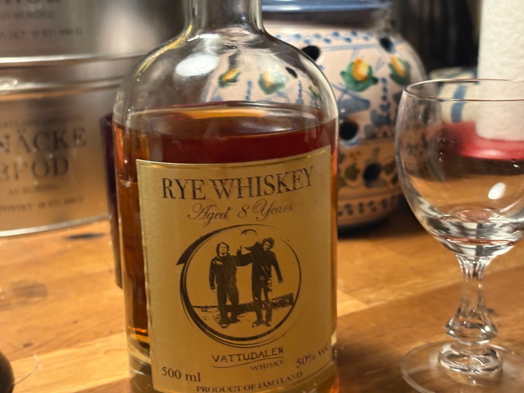 PS: Jag tackar också för presenter. Särskilt tack till Conny som knöt ihop mitt livs historia denna dag. Detta genom att lämna över en flaska 50-procentig Vattudalen Rye Whiskey ”med drag av kolade ekfat, vanilj, marsipan och kryddor i både doft och smak”. – Märkvärdigt?