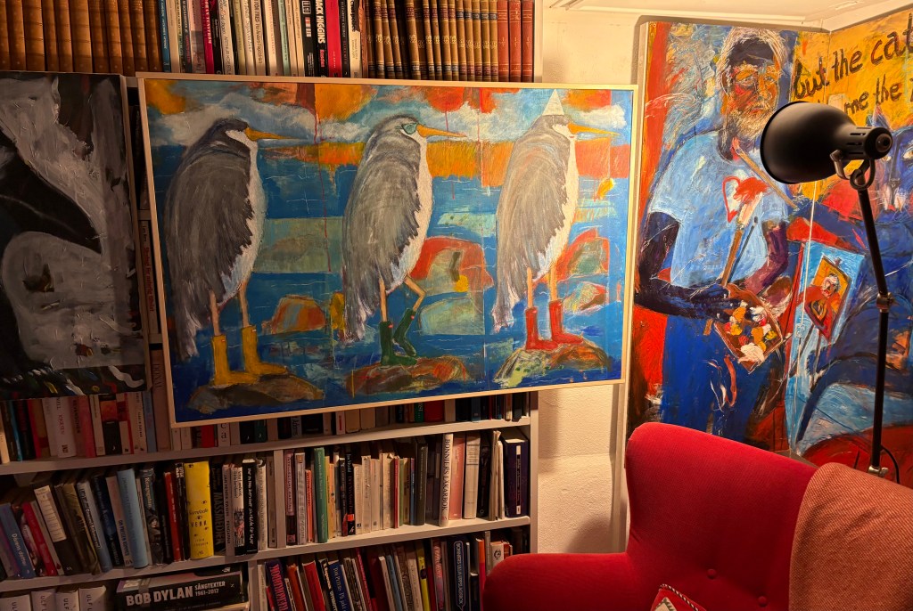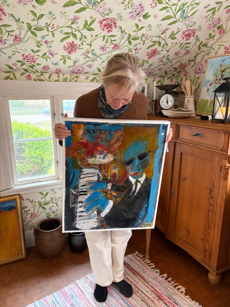 Ett 30-tal utställningar – och sextio år senare – har jag vernissage i vårt torp i Gökalund. Det är en slags lagerrensning, döstädning om man så vill. Det gick bra. Vem av oss som är mest omdömeslös är oklart. Av 115 verk säljer jag fyrtiofem (45!) under fem timmar. – Sååå roligt!