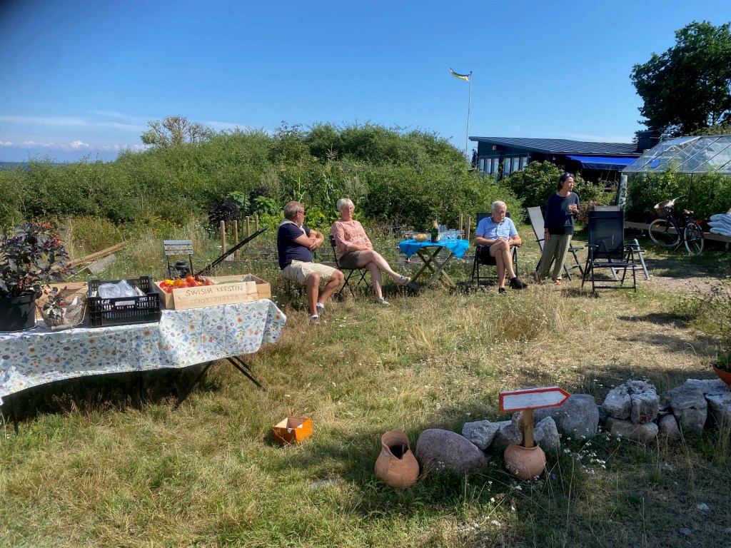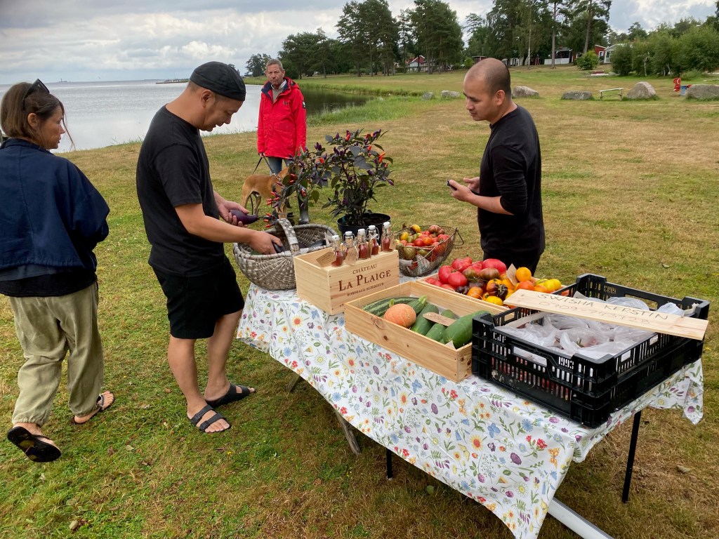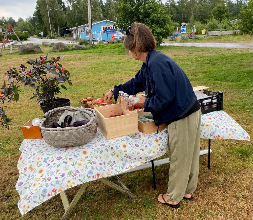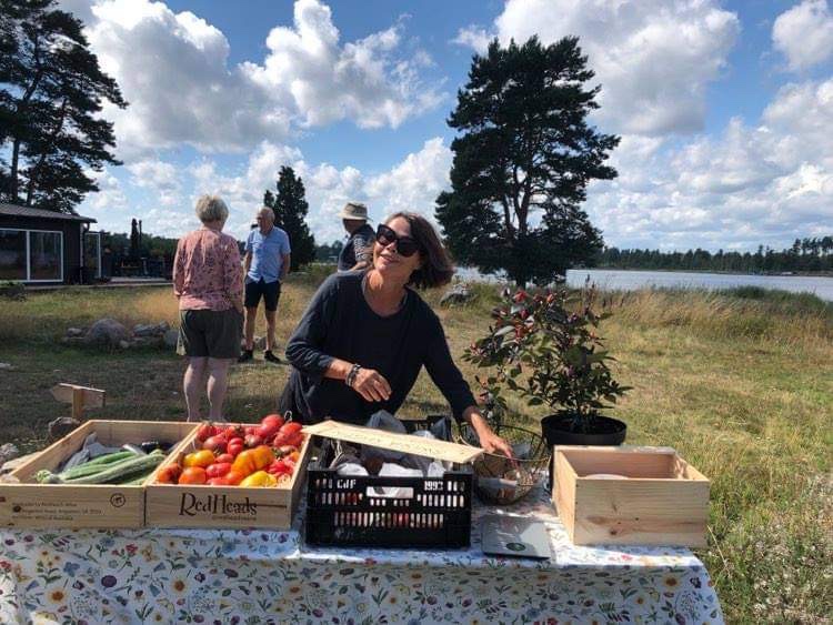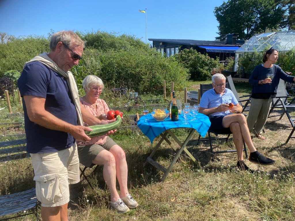 Känns så himla bra att bara kunna gå ut och hämta det jag behöver utan att behöva åka och handla. Dessutom har jag haft en kund här idag. Berömde grönkålen, och han fick plocka så mycket han ville. Kommer aldrig hinna göra av med all. Och så köpte han en gurka och lite tomater också. Väldans bra dag alltså! Fast det var väldigt kul i Stockholm också…