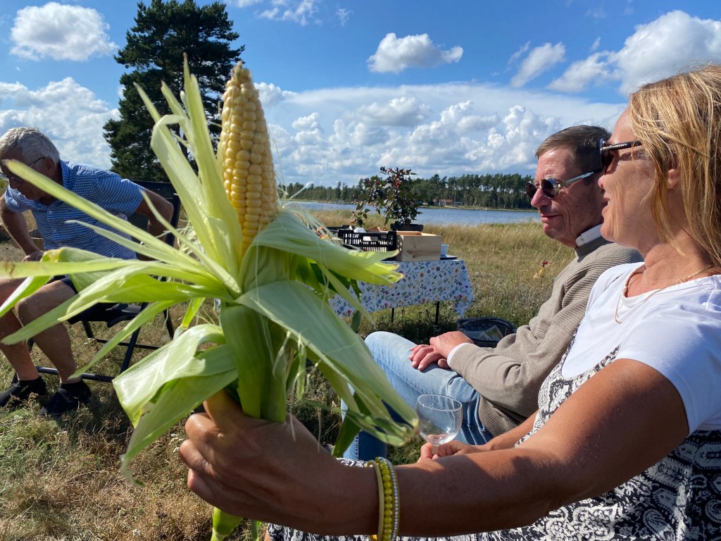 Tillbaka på udden får jag ett kort från en av sönerna. Han och flickvännen är vid Medelhavet och texten på vykortet lyder i översättning: Om du ser filmen Hajen baklänges är det en hjärtknipande historia om en haj som skänker armar och ben till funktionshindrade.