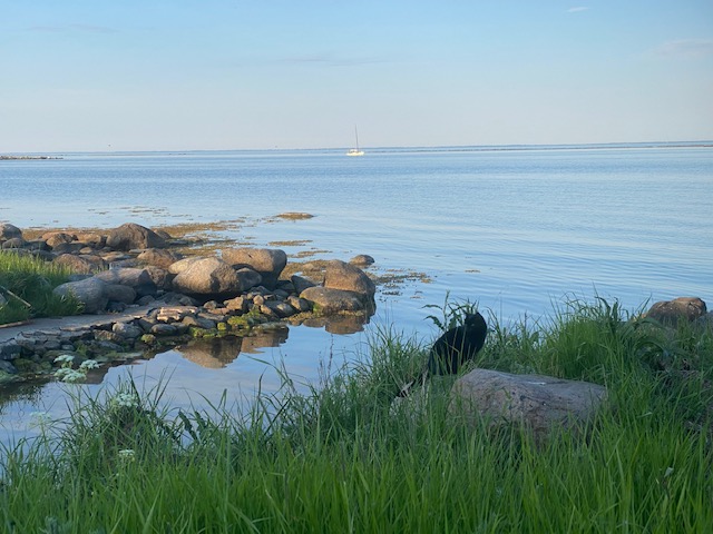 Sen ut och vattna! Upptäcker att det växer ogräs i båten. Båten ligger alltså fortfarande på land men Han har velat lägga i den i vattnet ett tag nu. Jag tycker det är skönt att slippa ha båten att slåss med i viken när jag ska bada. Och vi använder den aldrig, dessutom verkade det vara hål i den förra sommaren för den var hela tiden full av vatten. Det är för att det har regnat fick jag till svar oavsett om det regnat eller inte. Nu använde jag samma argument, ja att båten har ett hål och inte borde sjösättas. Nej, det är inget hål, svarar han…