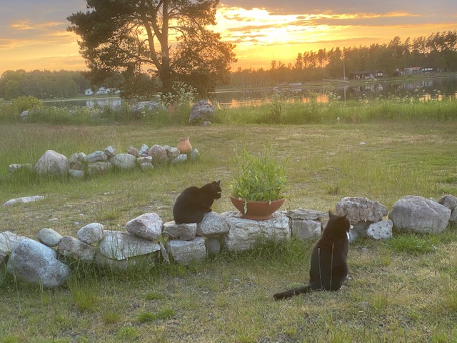 Han: Det var som tusan! Kanske borde jag ha haft koll på båten, men jag har varit upptagen med intellektuellt arbete. Ränderna går visst aldrig ur. Jag läser fortfarande tidningar med pennan i hand som vore jag ansvarig redaktör. Läser till exempel en mycket intressant artikel om Annika som fångade in en svärm med bin i närheten av Coop i Färjestaden.