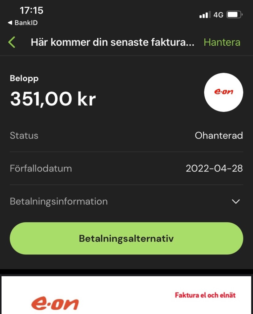 Menenpositiv överraskning idag var ändå elräkningen för hus1 som kom idag (med avdragen kompensation för tre månader):