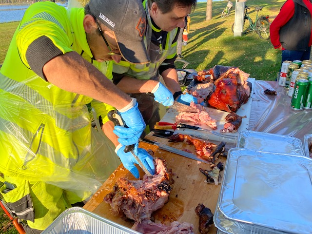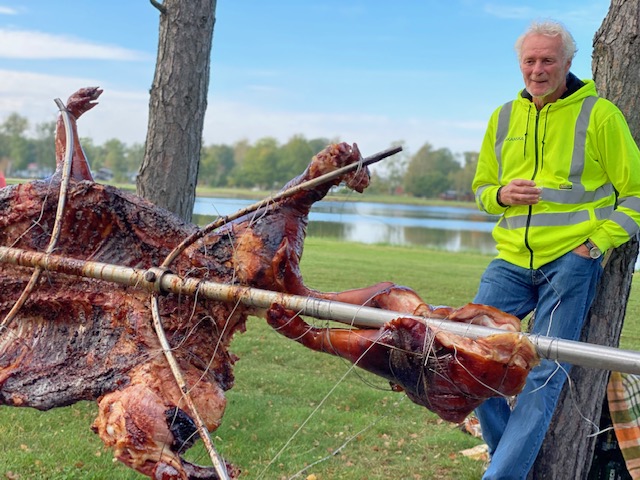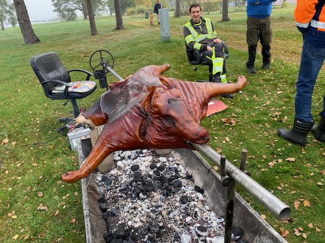 Viktigaste gästen på festen var förstås grisen. Stort tack till Urban Engman med medarbetare som gav en heldagslektion i hur man föder upp och tillagar en femstjärnig middag i solnedgång. I övrigt kan jag bara konstatera att somliga människor är lättroade och om inte festen slutat så pågår den även i vacker soluppgång. Men som sagt, värden gick hem tidigt och somnade glad som gris redan efter tolv timmar vid en grill. Ibland säger en film mer än en massa ord: