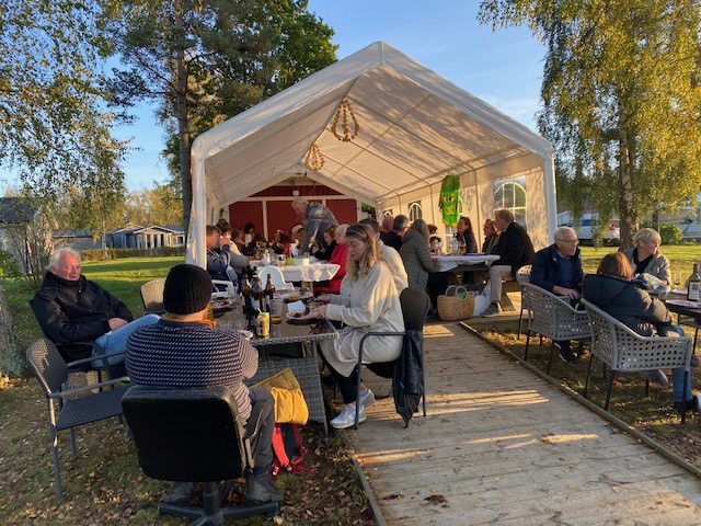 Han: Vaknar med ett fånigt leende i ansiktet. Minns inte att jag somnade, men det gjorde jag. Tidigt. Och med ett självbelåtet flin. Ty det blev en jäkligt trevlig fest, vår Oktoberfest med helstekt gris. Alla kom, alla 53 som hörsammat stugföreningens lockrop.