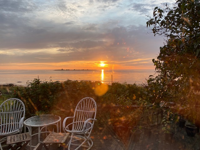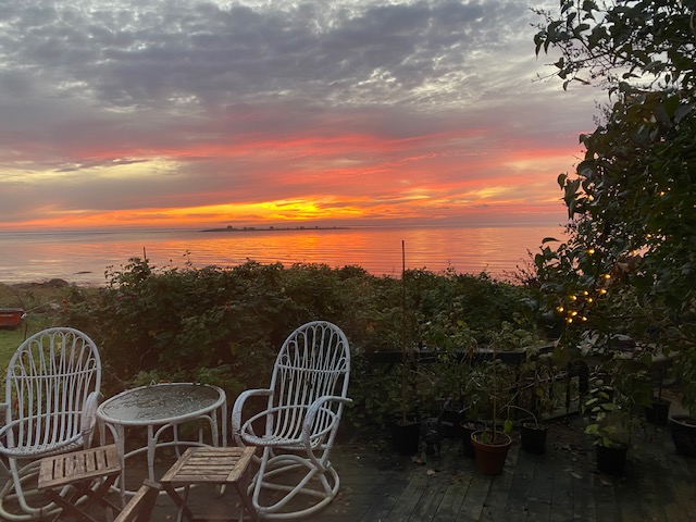 Och det ena gav det andra. Eld och vatten är motpoler. Hon blev varm av elden och drogs till havet. Fjolårets sista dopp i 14-gradigt vatten, vilket hon avstår från i år. Chiliodlare är som andra bönder. De jobbar när vi daglönare roar oss med att titta efter gäss och drivved.